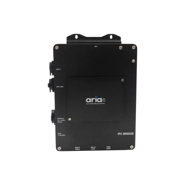 The ADJ Aria X2 IPC Bridge is a single universe, outdoor Aria X2 Bridge IPC. The future of wireless lighting management is here to transform your experience with unparalleled control, efficiency and ease. This comprehensive system harnesses cutting-edge technology to offer you a solution that adapts to your needs and provides a harmonious lighting experience, whether on show site or in the shop. In addition to transmitting the Aria X2 serial protocol, Aria X2 Bridge IPC is also compatible with ADJ WiFLY, Elation eFly, Magmatic MagFly and Acclaim Aria.