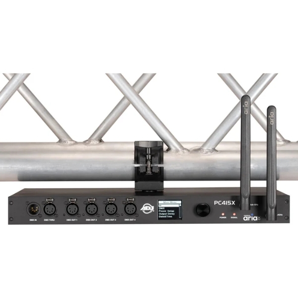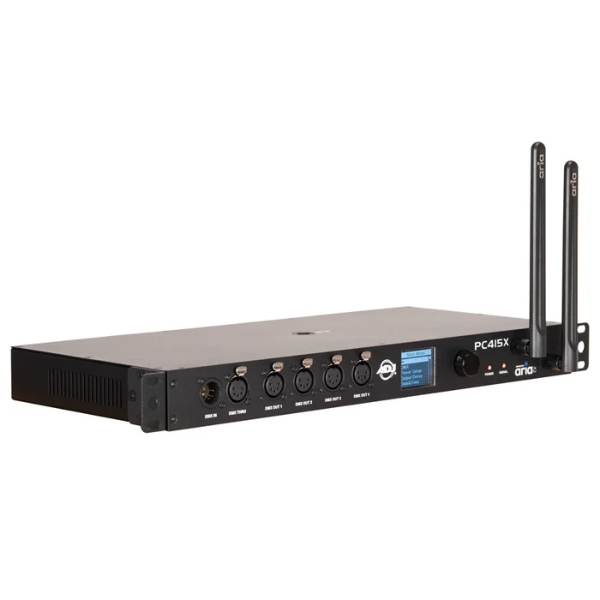 The ADJ PC415X DMX/Power Switcher with Wireless DMX is an innovative, all-in-one solution for lighting professionals, venues, and production teams seeking a reliable, efficient, and versatile power distribution and DMX control hub. This state-of-the-art device seamlessly integrates three essential features into one compact, rack-mountable unit: a 4-output power distribution centre, an advanced Aria X2 wireless DMX transceiver, and a 4-output DMX/RDM splitter. This powerful combination provides users with an unprecedented level of control and flexibility, making it an invaluable asset for live events, stage productions, touring, and fixed installations.