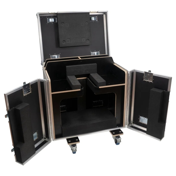 These flight cases consist of 10mm plywood with an HPL top layer and feature Penn Elcom heavy duty insert profiles, hinges, handles and automatic locks.
