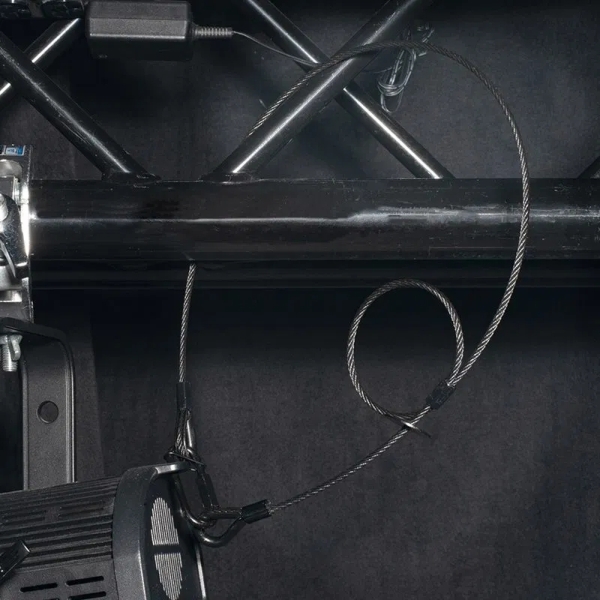 The Accu-Cable SC4B Safety Cable. Safety cables are an essential component in stage lighting setups to ensure the safety of equipment and personnel. They are used to secure various fixtures and equipment, such as stage lights, moving lights, and other heavy items, to prevent them from falling in case of accidental or unforeseen failures. It's always smart to play it safe!