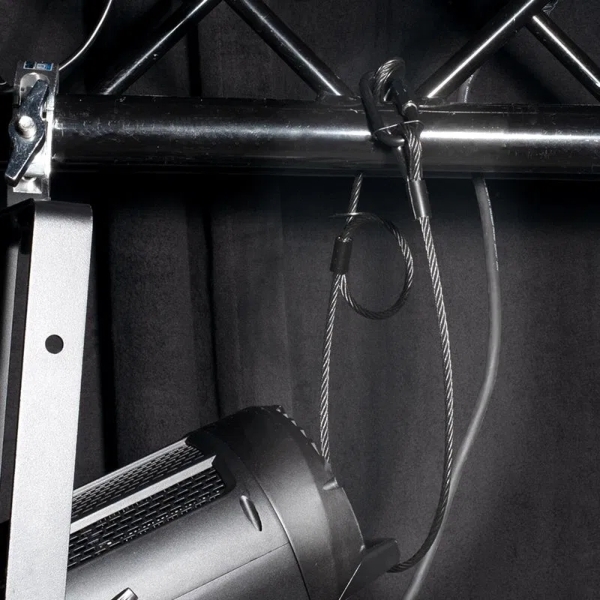 The Accu-Cable SC6B Safety Cable. Safety cables are an essential component in stage lighting setups to ensure the safety of equipment and personnel. They are used to secure various fixtures and equipment, such as stage lights, moving lights, and other heavy items, to prevent them from falling in case of accidental or unforeseen failures. It's always smart to play it safe!