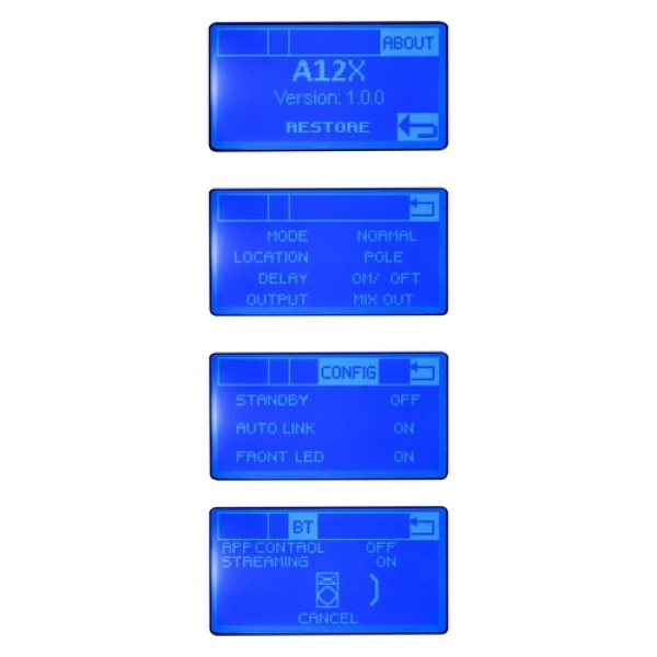 Built-in with digital signal processing (DSP), the A12X features an easy-to-use LCD screen and multiple presets to customize your audio output. With the selectable time-out function, you can save energy and extend the lifespan of your speakers by setting an auto shut-off timer.