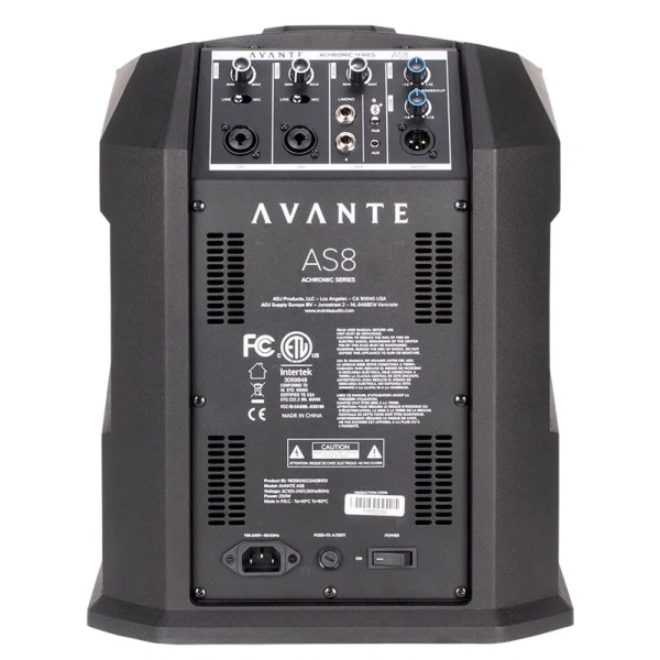 The fully-featured and easy to setup Achromic AS8 system comprises an active 8-inch subwoofer enclosure alongside two column units. One is loaded with six precision-aligned 2.75" speaker cones while the other serves as a spacer to lift the speaker column up to optimal height. Both feature Avante's new SAM (Secure Array Mount) system which allows the columns to lock securely to the sub and to one another without risk of being toppled over. The SAM connection also passes the audio signal from the sub up to the columns, removing the need for speaker cables, and allows the main column to connect directly to the sub without using the spacer if required, ideal for performances from a high stage.