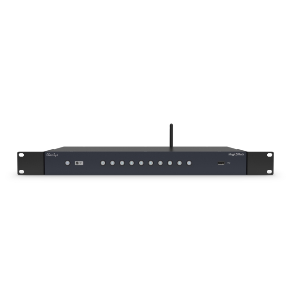 The ChamSys MagicQ Rack is a fully-featured rack mountable version of the MagicQ console designed for installations. It features the same operating system as MagicQ series consoles, but is designed to operate without physical user control, and supports all MagicQ features including scheduled events, OSC, UDP, and MIDI control.