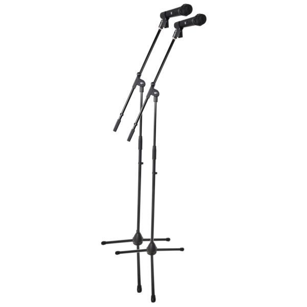The Chord Boom Microphone Stand Twin Pack with Bag is a heavy duty microphone stand with adjustable boom, ergonomic height grip and foldable tripod base. Suitable for all live performance and recording situations.