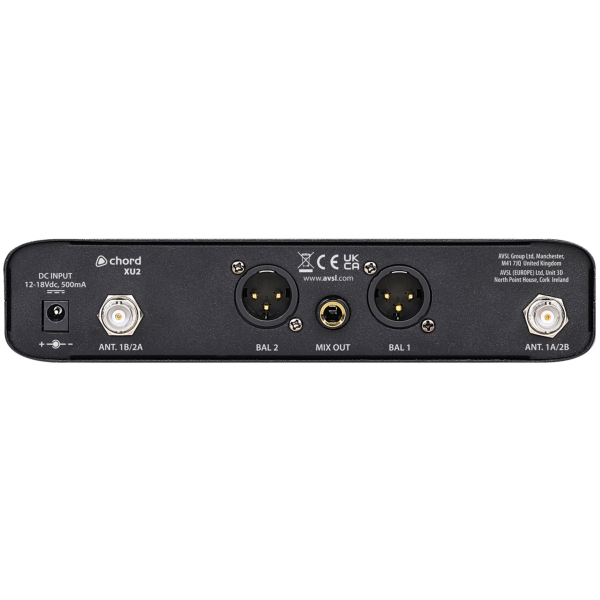 The Chord XU2-B Dual Bodypack UHF Microphone System offers pro-level features in a compact receiver with premium microphone transmitters. Supplied as a half-width 1U rack receiver with 1, 2 or 4 channels of either handheld microphones or bodypack transmitters with a neckband and lavalier mic option. The receiver is a true diversity type with dual antennas and internal distribution for minimizing dropouts. The front panel has a volume control and indicator LEDs per channel alongside a colour TFT display with level indications for each channel and settings for channel frequencies and colours. Each transmitter also has its own LCD display for frequency and battery status, with a backlight that can be set to one of 6 colours for identification. Carrier frequencies are arranged in 10 groups with carriers in both the UK/EU license-free UHF and PMSE licensed duplex gap UHF bands. Each set is supplied with hardware for mounting into a 1U rack space with extension cables to enable front mounting of the antennas. For a wireless microphone system with straightforward operation and intuitive features, the XU series delivers freedom and reliable operation to vocalists, presenters and instructors in a compact and convenient package.