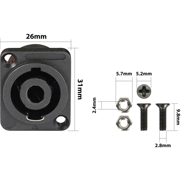 Eagle D-Series Metal 4-Pole SpeakON BNC Connector Plate Specifications- Colour: Black- Product Dimensions (mm): 31 x 26 x 31- Net weight (kg): 0.02