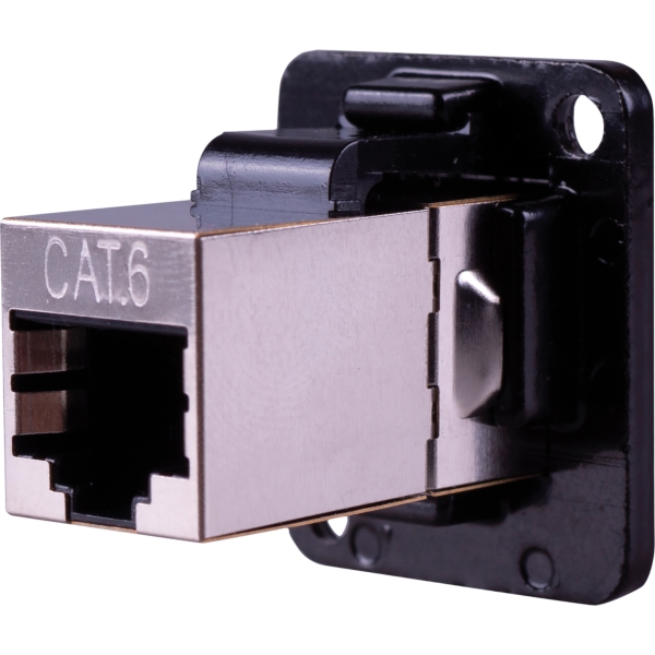 Eagle D-Series Metal CAT6 Shielded Ethernet Feed Through Connector Plate Specifications- Colour: Black- Product Dimensions (mm): 32 x 26 x 34- Net weight (kg): 0.02