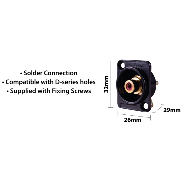 Eagle D-Series Metal Phono Connector Plate Specifications- Colour: Black- Product Dimensions (mm): 36 x 26 x 29- Net weight (kg): 0.02