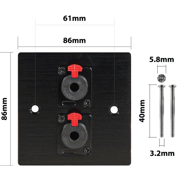 Eagle D-Series Brushed Aluminium 1-Gang Dual 6.35mm Jack Wall Plate - Black