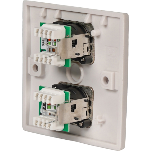 The Eagle D-Series 1-Gang Dual CAT5E Wall Plate Single wall plate for either flush or surface mounting (back box not supplied). Comes fitted with 2 X Neutrik Ethercon sockets (NE8FDV).
