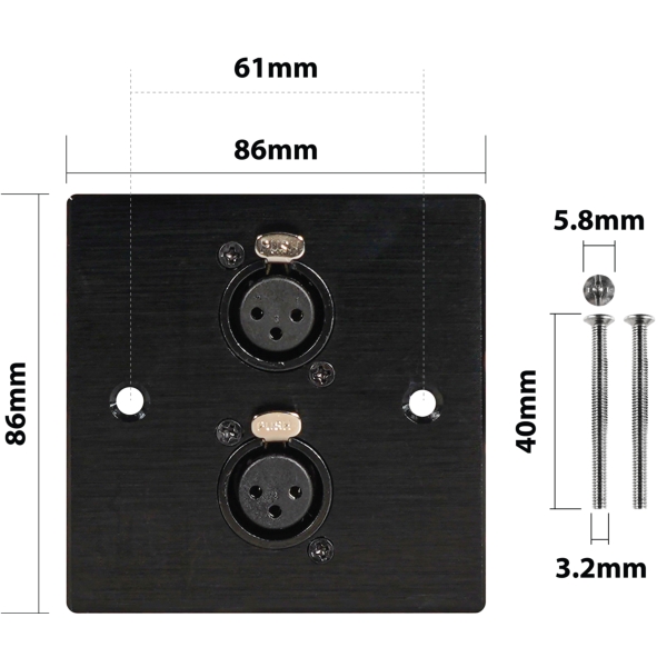Eagle D-Series Brushed Aluminium 1-Gang Dual Female XLR Wall Plate - Black