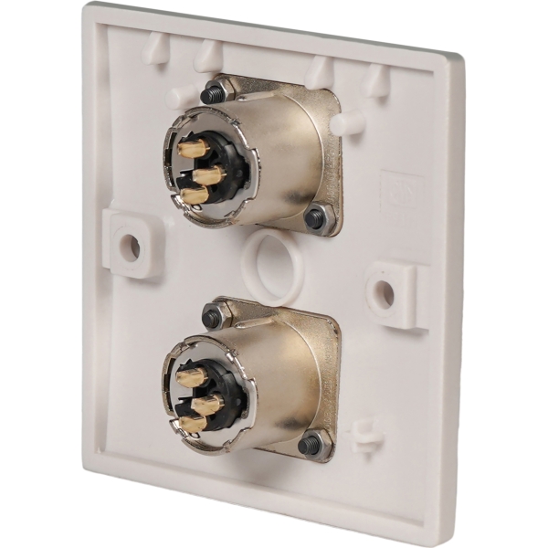 Eagle D-Series 1-Gang Dual Female XLR Wall Plate Specifications- Colour: White- Product Dimensions (mm): 90 x 90 x 30- Net weight (kg): 0.07