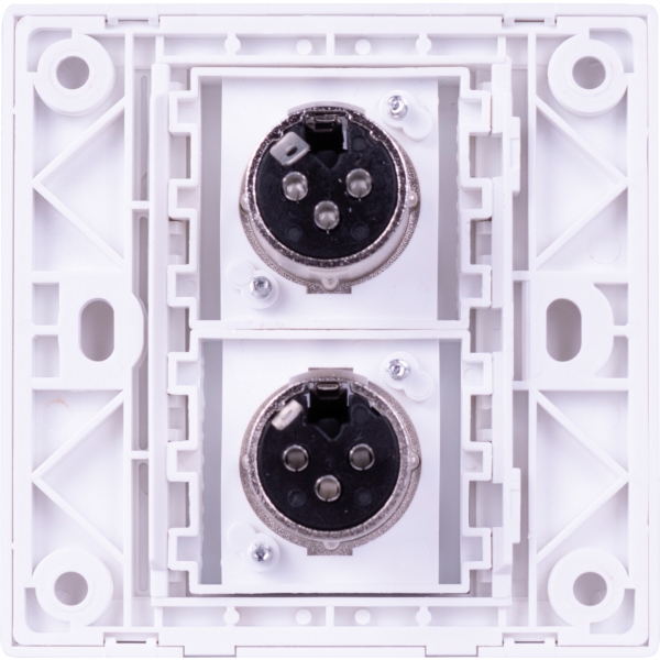 Eagle D-Series 1-Gang Dual Female XLR Wall Plate Specifications- Colour: White- Product Dimensions (mm): 86 x 86 x 30- Net weight (kg): 0.08