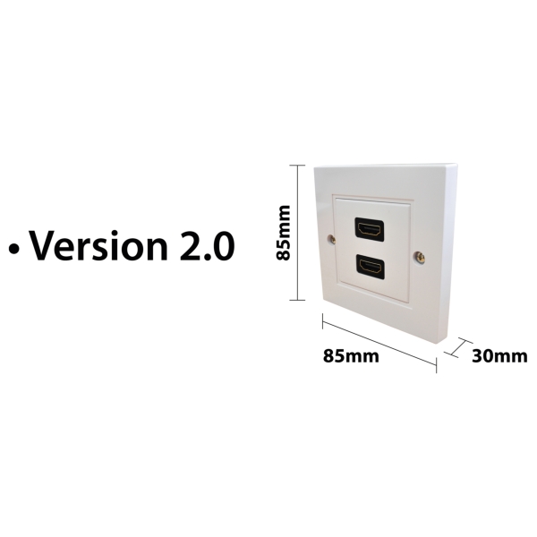 Eagle D-Series 1-Gang Dual HDMI Feed Through Wall Plate Specifications- Colour: White- Product Dimensions (mm): 85 x 85 x 30- Net weight (kg): 0.7