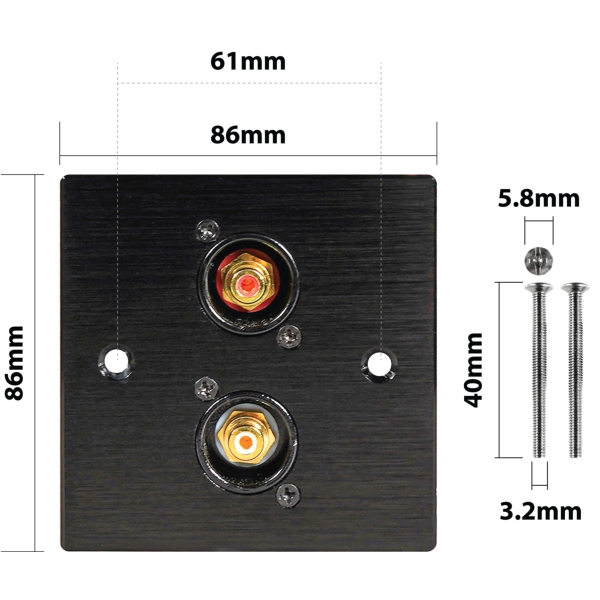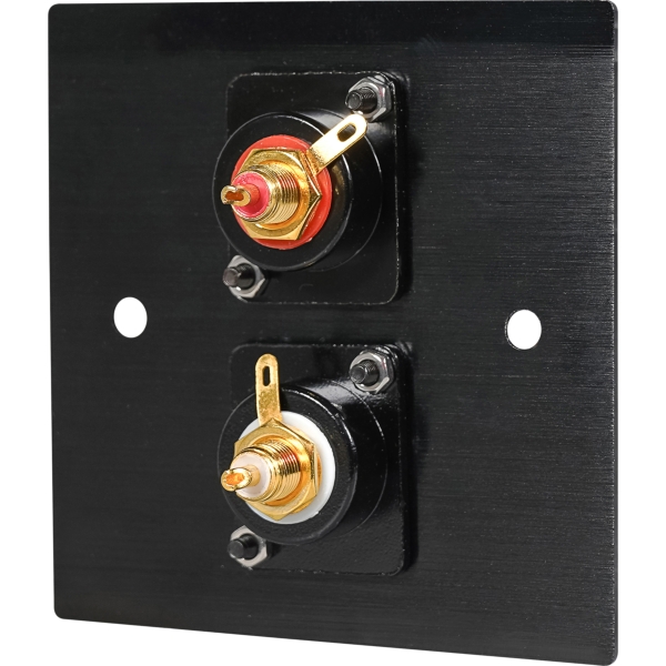 Eagle D-Series Brushed Aluminium 1-Gang Stereo Phono Wall Plate - Black