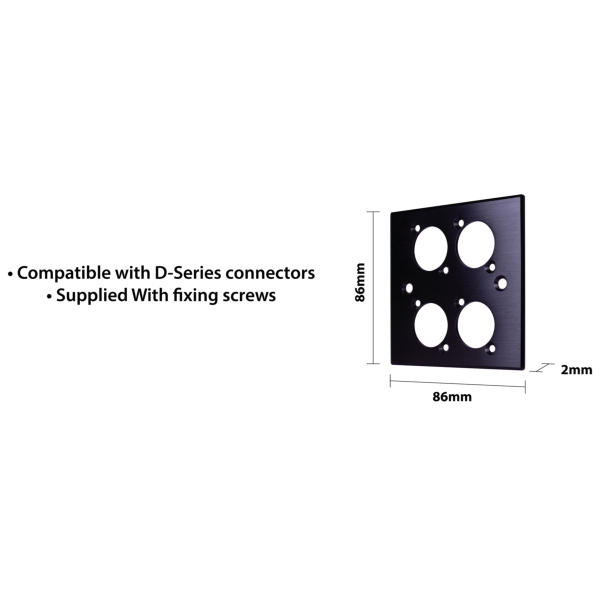 Eagle D-Series Brushed Aluminium 1-Gang 4-Hole Wall Plate Specifications- Colour: Black- Product Dimensions (mm): 86 x 86 x 2- Net weight (kg): 0.02