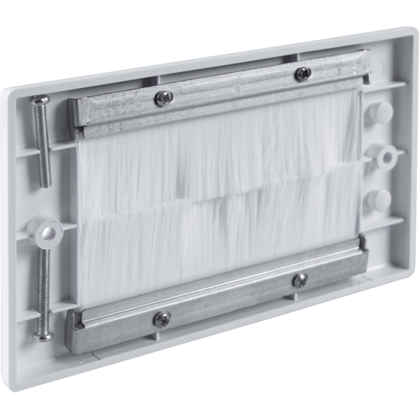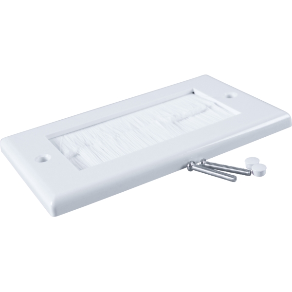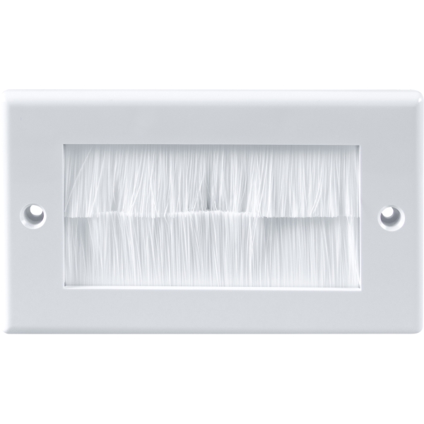 The Eagle D-Series 2-Gang Brush Wall Plate can be fitted to standard width electrical back boxes or screwed directly into the wall utilising the 2 fixing holes. Keep outlets tidy and hide cable entry points in your walls.