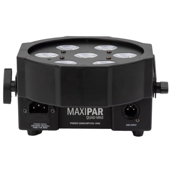The Equinox MaxiPar Quad MKII RGBW LED Par is designed for uplighting as well as stage lighting, and will bring deep, rich colours to any event or venue. It features 7 x 5W quad-colour RGBW LEDs which offer smooth colour mixing. Operational modes including DMX, auto, sound active and primary/secondary modes.