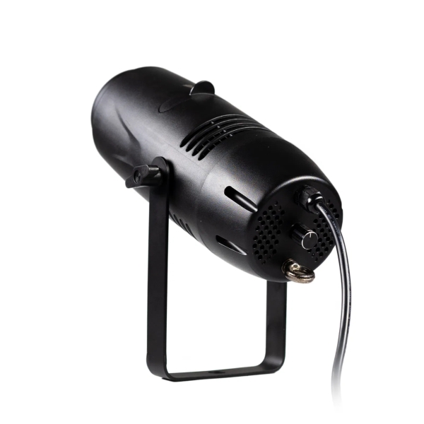 The Equinox Motif Gobo Projector is a sleek yet powerful gobo projector designed for professional use in events, rental, and installations. Optimised for projection distances of 1m to 6m, it features simple rear-panel control for gobo rotation, allowing users to choose static or one of four rotation speeds in either clockwise or anti-clockwise directions. The projector's 3m captive power cable enables discreet connection, and it's supplied with a pack of gobos ready for immediate use. The Motif delivers crisp, bright projection from its 40 W 8000K white LED, all housed in a clean white chassis built for reliability and visual integration into modern venues.