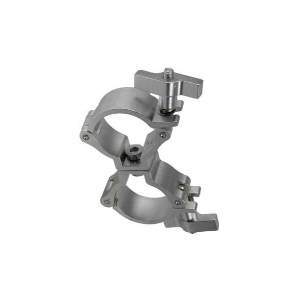 The Equinox SWC50S PRO Aluminium 50kg Swivel Coupler is designed for professional truss and rigging applications, offering a 360° swivel for flexible positioning. Manufactured from lightweight yet strong aluminium, it features the same robust construction and 50kg load capacity as the standard half coupler, with a secure wing-nut fastening for fast installation. Ideal for stage, event, and touring use where adjustable angles are required.