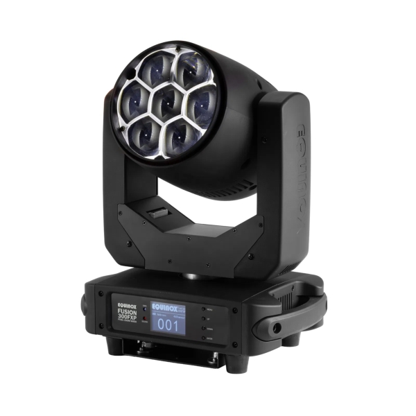 The Equinox Fusion 300FXP Pixel Zoom Wash RGBW LED Moving Head is a compact RGBW moving head fixture featuring 7 x 40W quad-colour LEDs (RGBW), fully pixel mappable to create stunning eye candy effects. A motorised zoom function ranges from a narrow 5° beam angle to a wide 40°, and the front-lens rotation allows superb mid-air multibeam effects and wide washes of colour. This powerful stage lighting unit also includes colour temperature presets, DMX, auto, sound active, manual control, and primary/secondary modes - all accessible via the onboard 4-button menu.