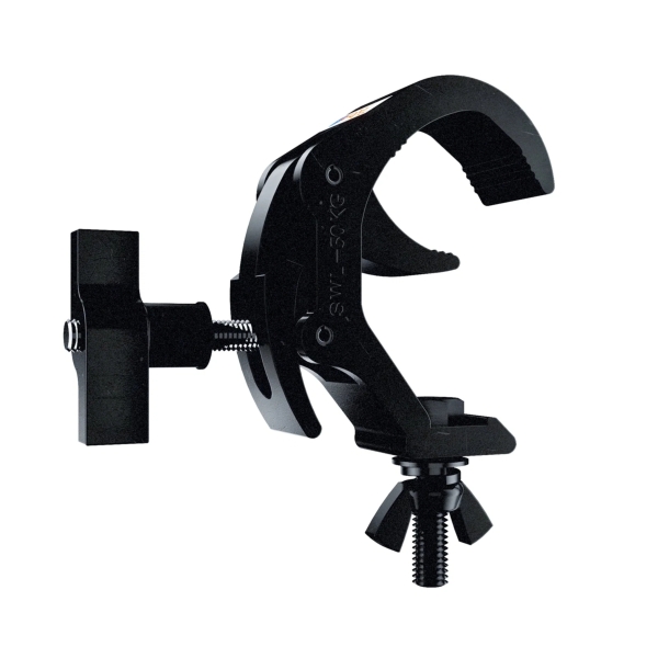 The Global Truss Selflock Hook Easy Light 25mm Wide is a lightweight yet robust self-locking hook designed for versatile use. Its slim design allows for easy placement on the truss, providing a high level of flexibility during setup. Despite its compact construction, the hook features a safe working load (SWL) of 50 kg.
