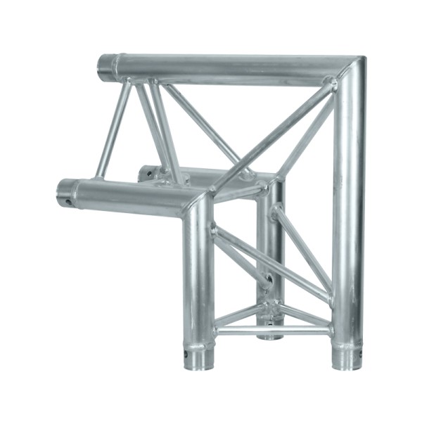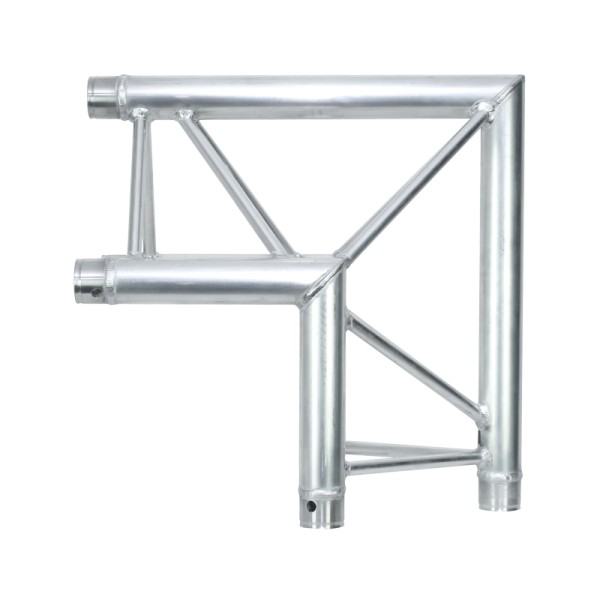 Global Truss F33 PL 2 Way 90 Degree Corner Apex Out (F33C24PL), The Global Truss F33 feature TUV Certified aluminium welding and 3mm wall thickness for a superb load handling capacity. A full range of lengths, baseplates, corners, connectors and couplers are available, making them ideal for fixed installation, shop fittings and rental applications.