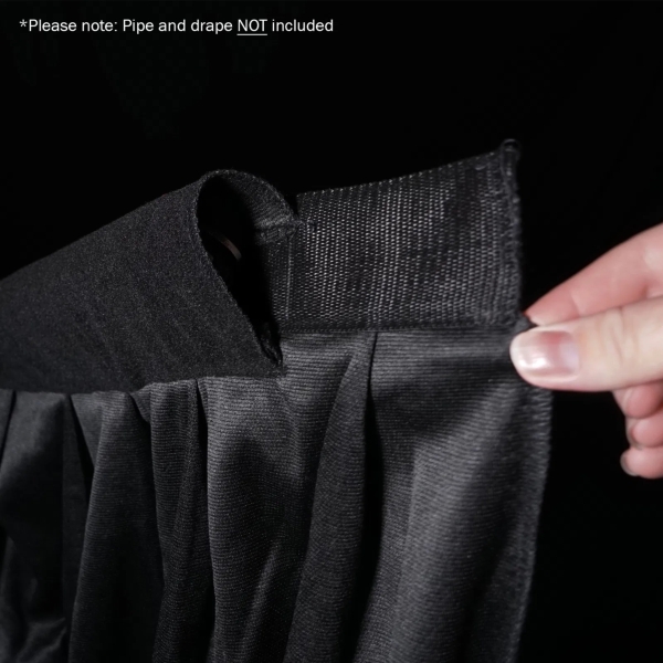 The LEDJ 4 x 8m Black Pipe and Drape Curtain is a versatile product that can be used for multiple applications. Not only can it be used for stage dressing and to enhance room aesthetics, it can also help reduce the sound transmission between the different parts of a venue. The top edge of the cloth has pockets sewn in at the rear to accommodate a tube up to 41mmØ.