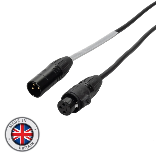 The elumen8 Seetronic Male to Female 3-Pin IP XLR Cable is a high quality cable made in Britain using genuine Seetronic black body IP65 XLR connectors and Elumen8 tour grade 1 pair screened DMX cable. Designed to carry digital signals from between consoles and fixtures. A super flexible and durable PVC jacket protects the inner workings of the cable from harsh environments. In addition, the inner cores feature heat resistant insulation to protect the integrity of the signal even when subjected to high temperatures.