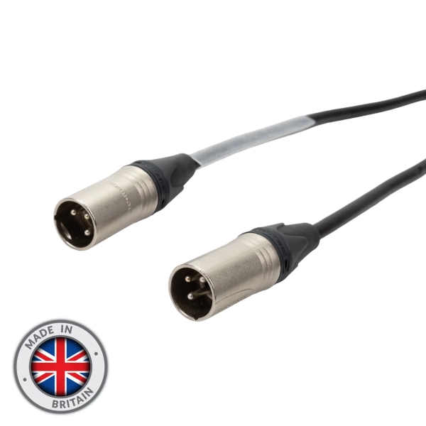 elumen8 XLR Male-Male Microphone Cable Features- Made in Britain- Super flexible PVC outer jacket- 3-Pin Neutrik male NC3MXX XLR to 3-Pin male NC3FXX XLR- Clear heatshrink suitable for identification or asset label- Silver XLR connectors- Heat resistant- Braided, tinned copper screen, 90% coverage- Conductors: 2x 0.51mm² (20AWG)- Shield: Spiral, bare copper- Outer cable diameter: 6mm- Cotton stuffing for extra flexibility