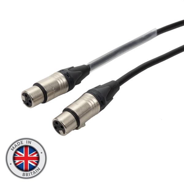 elumen8 XLR Female-Female Microphone Cable Features- Made in Britain- Super flexible PVC outer jacket- 3-Pin Neutrik female NC3MXX XLR to 3-Pin female NC3FXX XLR- Clear heatshrink suitable for identification or asset label- Silver XLR connectors- Heat resistant- Braided, tinned copper screen, 90% coverage- Conductors: 2x 0.51mm² (20AWG)- Shield: Spiral, bare copper- Outer cable diameter: 6mm- Cotton stuffing for extra flexibility