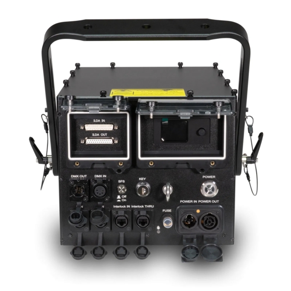 The LaserWorld PL-10.000RGB is a high power, full colour laser with built in multi-control mainboard. Amazing DMX / ArtNET control with internal safety settings making it simple to control multiple units along with the rest of your DMX lighting. Full feature laser show software license included. Sealed optics section for low maintenance. Perfect for large nightclub installs, indoor events, small outdoor events and look amazing on large productions in numbers running DMX chases. IP65 waterproof laser system, suitable for outdoor use. Including waterproof flightcase.