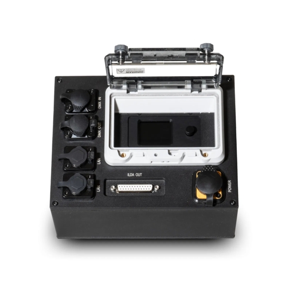 The LaserWorld ShowNET PRO Interface is a professional network interface for laser control. It comes in a rugged and rainproof aluminium housing and thus its suitable for indoor and outdoor use. The Laserworld ShowNET PRO Interface comes with an build in ShowNET DAC with display for easy control. It offers all the features of the regular ShowNET, the powerful laser control board with digital-analog-converter (DAC), DMX / ArtNET, stand-alone and ILDA Streaming feature!