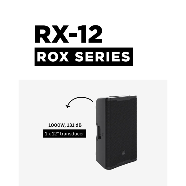 The Lynx ROX-12 12-Inch Active Speaker is a high-performance 2-way active PA system from the ROX Series, designed for professional sound reinforcement indoors or outdoors. Featuring a 12-inch low-frequency driver with 3" voice coil and a 1.35" compression driver, it delivers 450W RMS and 1000W peak output via a Class-D amplifier. FIR filter DSP ensures precise sound reproduction, while onboard EQ, delay, sub crossover, and scene memory provide full system control. The RX-12 also supports Bluetooth TWS stereo pairing for wireless streaming and cabinet linking. With a maximum SPL of 125 dB (131 dB peak), wide 90° x 60° coverage, and rugged polypropylene housing, it is ideal for live events, installations, and demanding professional applications.