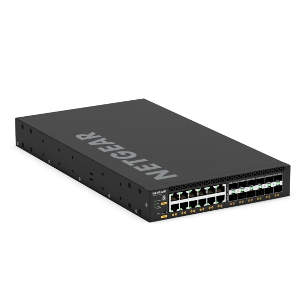 The Netgear XSM4324-100NES M4350-12X12F 24-Port 12x Multi Gig 12x SFP+ Managed Switch is a fully managed AV and IT switch featuring 24 ports comprising 12 10G/Multi-Gig ports and 12 10GBASE-X SFP+ ports. It includes a 240W internal power supply and a half-width form factor that allows one or two switches to be installed in a single rack space for redundant top-of-rack deployments. Virtual Chassis stacking provides non-stop forwarding (NSF) and hitless failover. The switch supports advanced Layer 3 capabilities including static, policy-based, and dynamic routing. NETGEAR IGMP Plus, an AV user interface, and Engage Controller simplify audio/video over IP network deployments. ProSAFE limited lifetime hardware warranty and lifetime next business day hardware replacement are included.