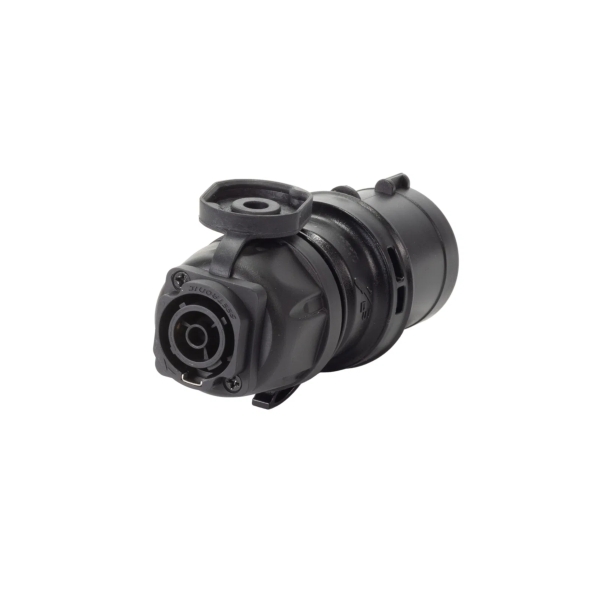 The PCE 16A Plug to PowerTwist TR1 Socket (013-6XT1) converts a standard 16 A plug into a TR1-compatible plug, enabling easy integration with TR1 cable systems. Rated IP44 for safe usage in splashed environments and finished in sleek black. Tested for 2P+E at 230V.