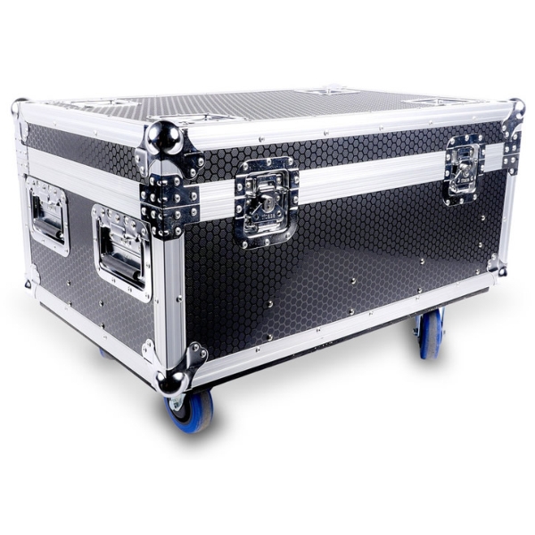 The Q-Audio Q-LED Lighting Flux FC8 8-Way Charging Case for Q4IP and H4IP is a professional-grade charger flight case designed for convenience, efficiency, and durability. With capacity to charge 8 uplighters at once through wireless contact points in the base of the case, it streamlines event setup and pack-down. Equipped with a TRUE1 power input and output, it ensures reliable connectivity for demanding environments.