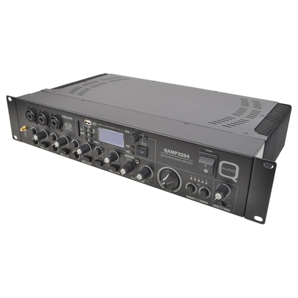 Q-Audio QAMP3204 One or Two Zone Mixer / Amplifier with Media Player, Bluetooth, FM Tuner, Built-in Jingle Player