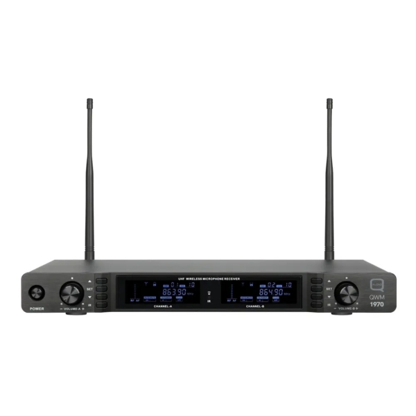 The Q-Audio QWM 1970 HH BP Dual Channel Diversity Handheld/Bodypack Wireless System where top-tier professional quality meets affordability, transforming wireless microphone technology into an accessible powerhouse. Crafted with precision engineering, this system offers exceptional audio performance without the premium price tag.