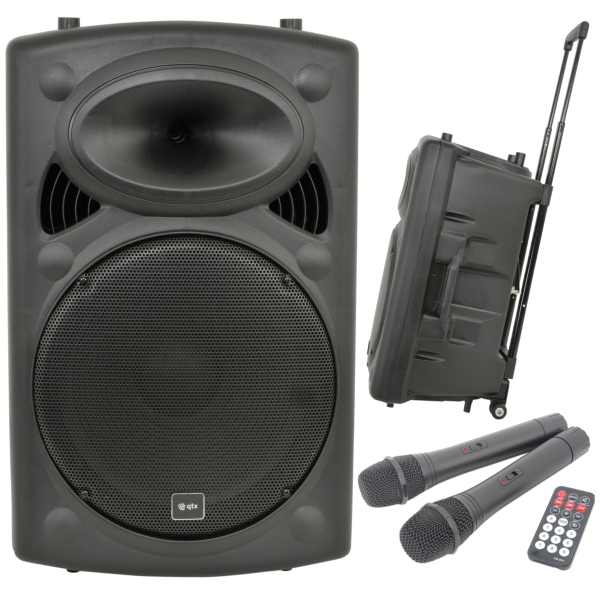 QTX QR15PA Portable PA Speaker with TWS + UHF Microphone, 100W
