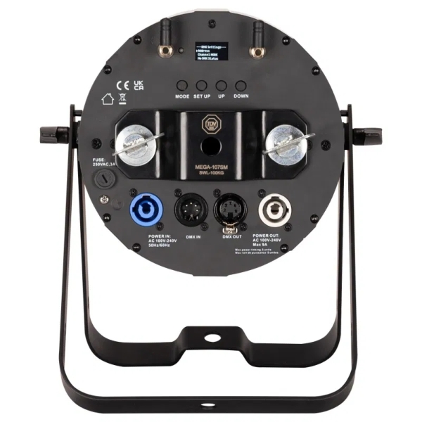 Offering a wide native beam angle of 80-degrees, allowing a large area to be washed with vibrant coloured light, the fixture is also supplied with a useful lens kit. This comprises both 40-degree and 50-degree lens options, which easily and securely clip to the front of the fixture to provide a narrower beam angle when required. For easy integration into an existing control system, 5-pin DMX input and output sockets are included on the unit’s rear panel. There are also locking power input and output sockets, which can be used to connect up to three fixtures to a single power outlet. It is also supplied with a flexible scissor yoke, which can either be used as a hanging bracket or floor stand, and barn doors for directing the light output are available as an optional accessory. An Omega Bracket is included so that this fixture can be hung vertically as a pendant light.