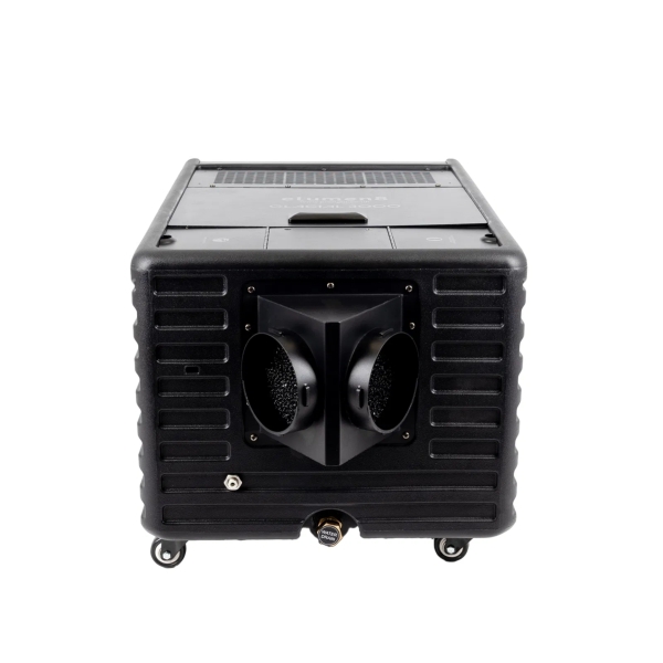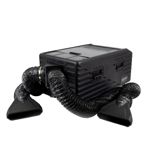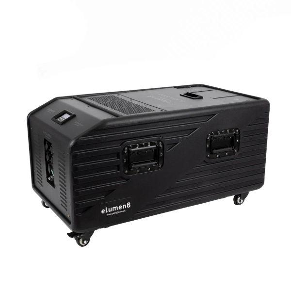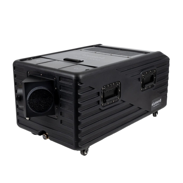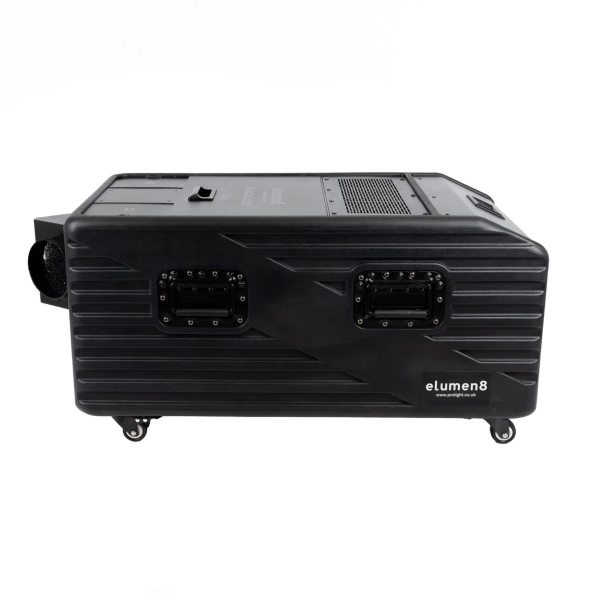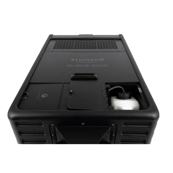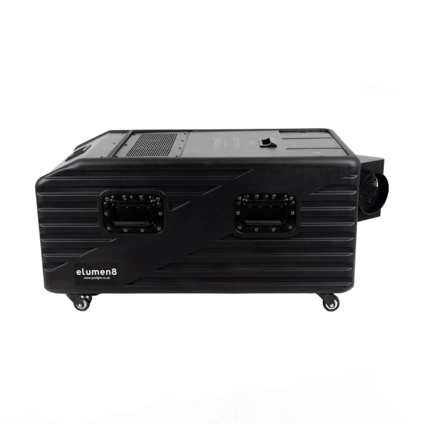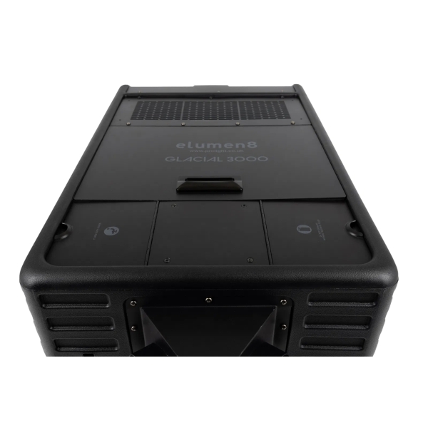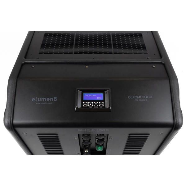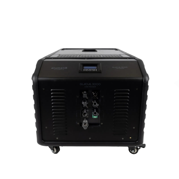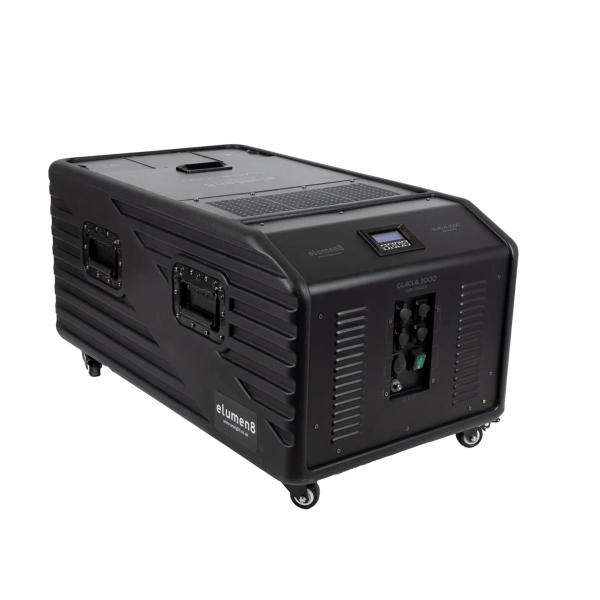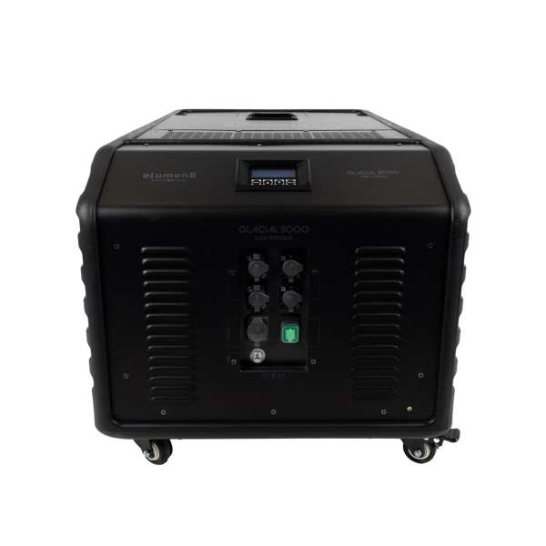 The elumen8 Glacial 3000 Low Fogger is a low-lying fogger that creates high output ground hugging, cloud-like effects which are ideal for use on large stages, theatres, live events and theme parks. The unit has a fast heat-up time of only 5 minutes and no dry ice or CO2 is needed. With a near silent output, only water and fog fluid is required for a continuous output. Easy transport features include a rugged ABS housing with integral recessed side handles and heavy duty rubber wheels. Control is facilitated via the LCD display or DMX.