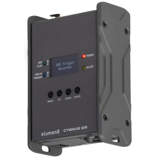 The QR is a compact DMX recorder and playback unit that can trigger shows stored on the included micro SD card. Shows can be triggered via 6 external triggers (when used with the WP3 Playback Wall Plate) or via 12 DMX triggers. Each trigger can start a show or scene with up to 24 hours of storage from the included SD card. Each show can be played once or on a loop.