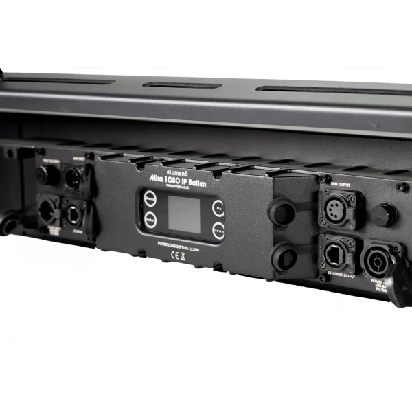 The elumen8 Mira 1080 IP RGBW LED Pixel Batten is a powerful, IP65-rated pixel batten fixture engineered for large-scale outdoor and indoor lighting applications. Featuring 108 x 10W RGBW quad-colour LEDs and a wide 36° beam angle, it produces bold, even washes with 12-zone pixel mapping control. This high-output unit supports DMX, Art-Net, and sACN protocols with selectable refresh rates up to 24kHz for flicker-free camera work. The Mira 1080 includes an integral Art-Net to DMX bridge for downstream control, a heavy-duty adjustable rigging bracket, and quick-release omega clamps. Units can be seamlessly aligned side-by-side to create uninterrupted lighting bars, making it the ideal fixture for stages, arenas, and architectural applications.