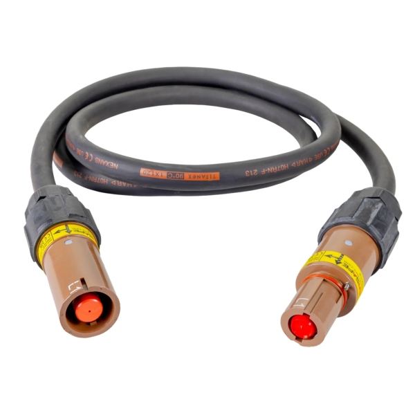 The elumen8 120mm Powerlock Male Source to Female Drain Cable is a rugged, high current capacity cables designed for interconnections between generators, venue power sources and distribution equipment. Assembled in Britain using Nexans Titanex single core H07RN-F cable fitted with eLumen8 Powersafe 500A connectors in line drain to line source format. The three phase power distribution range includes: Earth, Neutral, L1, L2 and L3, available in either source or drain format as 800A or 500A, determined by cable size (240mm²-300mm² requires 800A plugs, 25mm²-185mm² requires 500A plugs). They are a safe alternative to Camlock connectors and fully compatible with Litton VEAM, T4 400 and T6 660 amp powerlocks, ITT Cannon and other manufacturers.