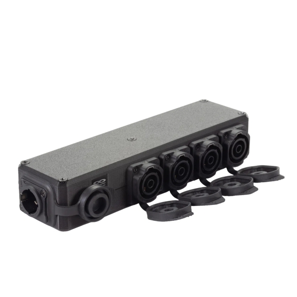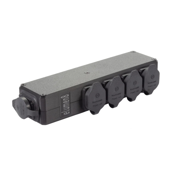 The elumen8 TR1-B Truelink T-Piece: 1 In 4 Out is a robust 16 A TR1-compatible power distribution block offering four independent socket outlets within a compact, durable module. Designed for integration with TR1 cable systems, it delivers professional-grade performance for trade, event, and industrial environments. The IP44 rating ensures protection against splashes and dust, and its black housing provides a sleek, professional finish.